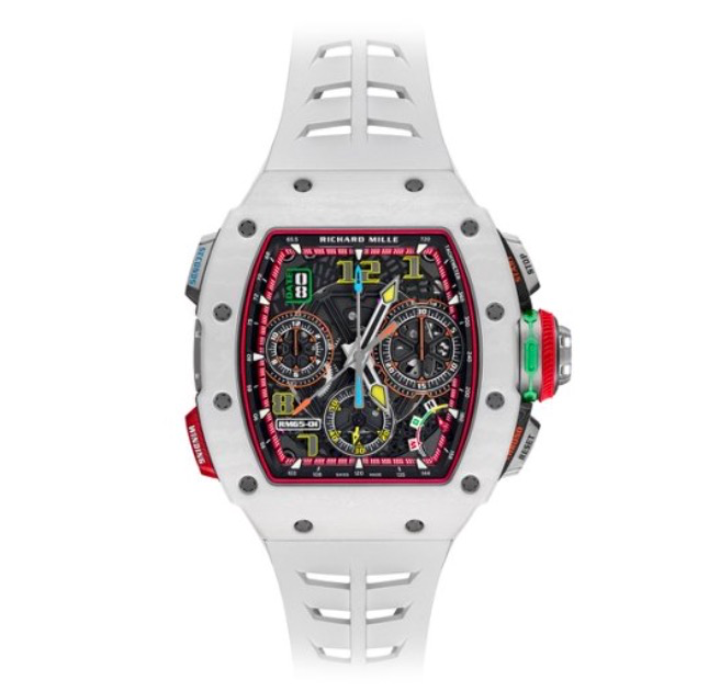 RM 65-01系列历经近五年潜心研发,以自动上链双秒追针计时这一高复杂功能为核心,融合精湛机芯工艺、创新材质应用与多元设计表达,成为众多腕表藏家与机械爱好者竞相追捧的代表之作。这枚专为二十一世纪而生的计时码表,搭񙫧赫兹(每小时振�,000次)的高振频可变惯性摆轮,在确保长时间走时稳定精准的同时,将计时精度提升至十分之一秒。RM 65-01堪称一台腕间“赛车”,它配备可读取中途时间的双秒追针计时功能,同时也是RICHARD MILLE首次将该复杂功能应用于自动上链机芯之中。