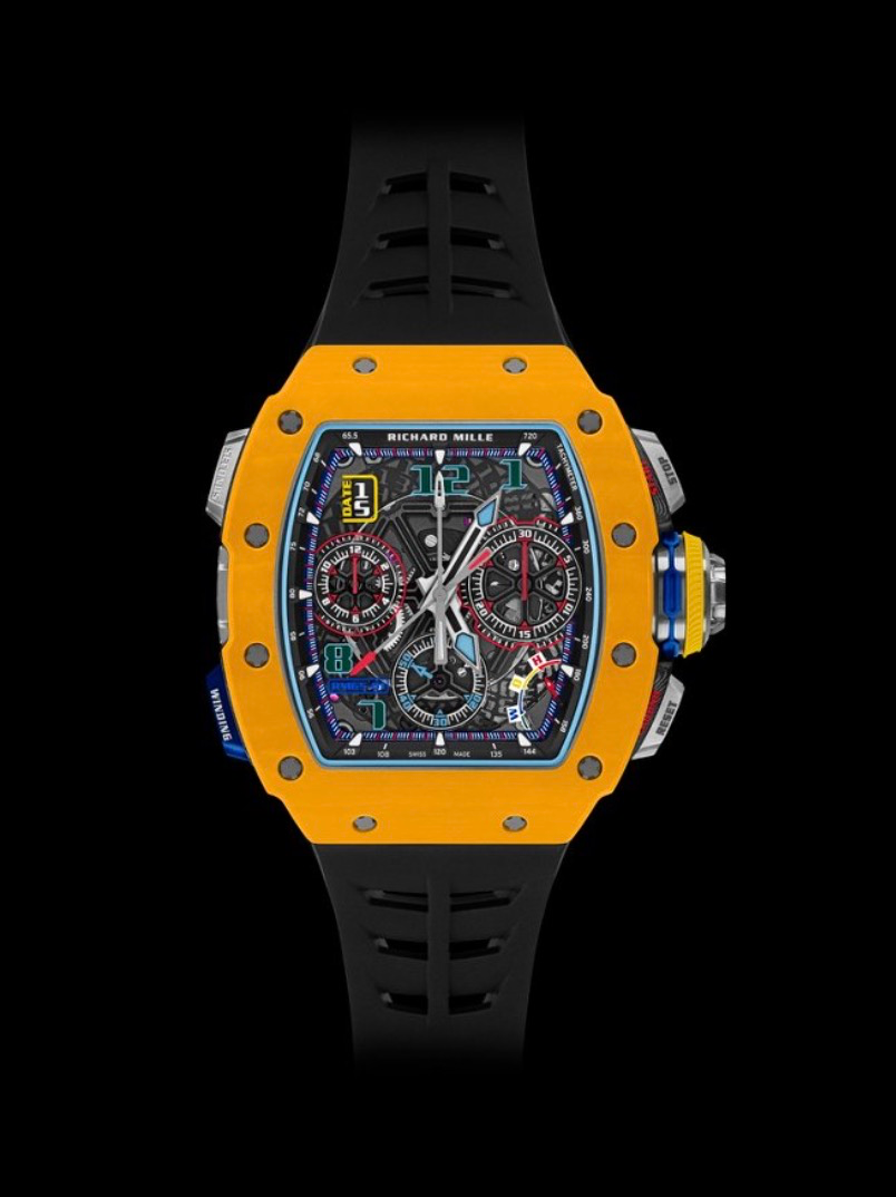RM 65-01 McLaren W1款:腕表充分体现了将传统制表工艺转化为一种特殊艺术形式的创新精神,其灵感来自于最新的W1跑车。这款最新的腕表进一步增强双方的合作关系,再次将彼此的专业技术结合,制造出在钟表和汽车性能上都建立新高度的作品。